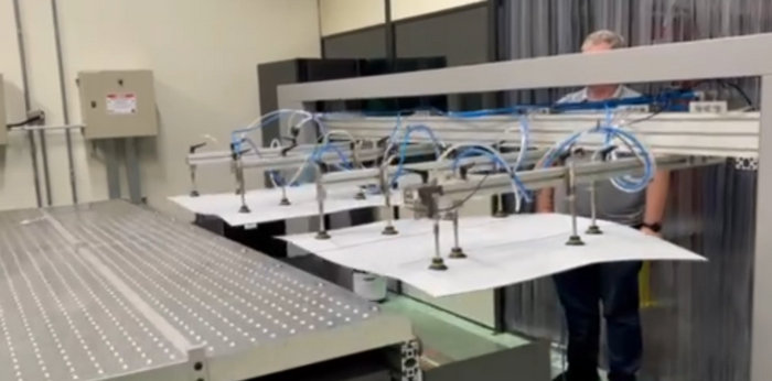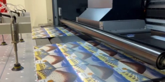上圖為91抖音免费视频國外客戶利用HTA2500 ROBO高速UV打印機對鍍錫薄板進行噴墨加工,配合91抖音免费视频獨特的油墨方案,打印後可直接進入下道成型的工序。最高每小時300平方米以上的產能,滿足了客戶日常訂單的需求。自動上下料係統,節省人力,為產線全自動聯線提供了良好的基礎。